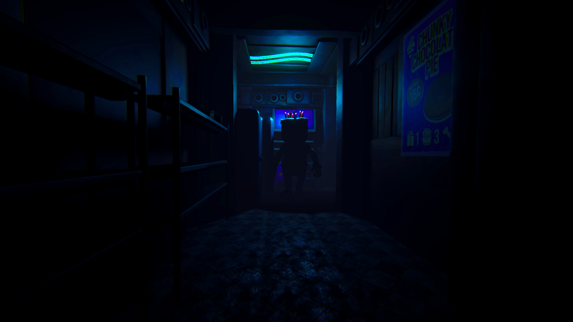 Inside this twisted bakery, players explore a mix of darkness and desserts. To stay alive, they must collect randomly placed ingredients used to bake colorful cakes. Throwing a perfectly baked cake can stun or defeat enemies. A flashlight helps locate key items, and players can also discover various notes scattered around the bakery.