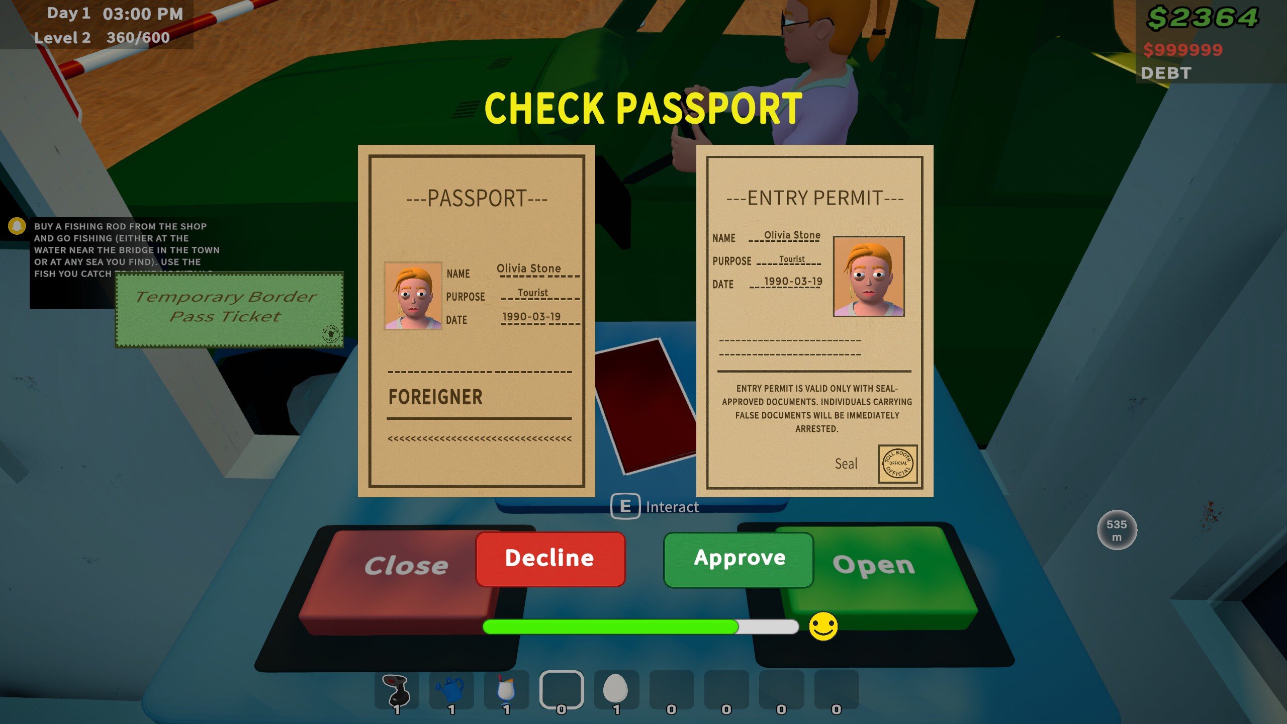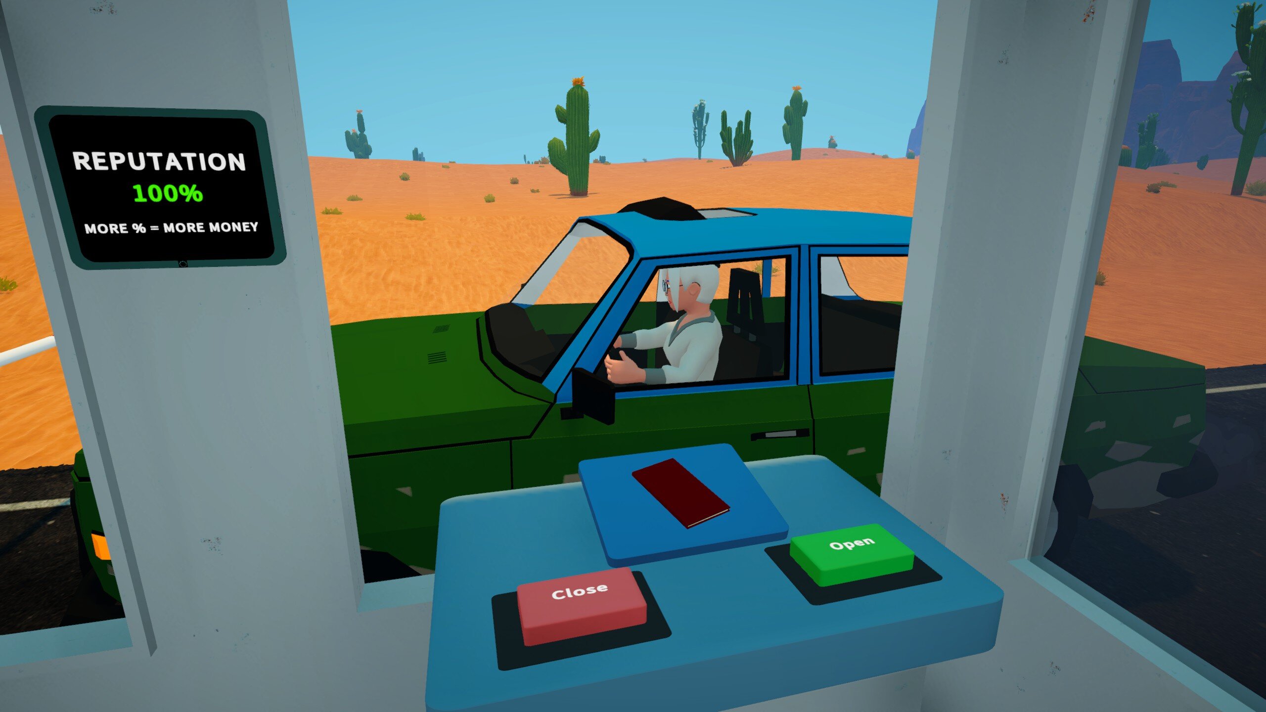 In Toll Booth Simulator, the player manages a toll booth on a desert highway. This job requires checking passports, collecting tolls, and deciding who may pass and who may not. However, routine work is only part of the fun. This unconventional simulator blends various genres, creating a mix of simulation, chaos, humor, and survival.